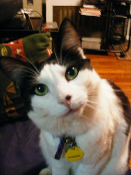 When I got to the shelter, however, I was taken by a stunning female tuxedo, the happiest cat I have ever seen in a cage. She purred at me when I looked at her, she purred when we put her in the box to come home, and she purred throughout the bath we gave her after she pooped all over herself on the ride home (she never cared for travel). When Chester was two years old she escaped from the apartment I was living in at the time, and wound up lost in a Brooklyn alley for about fifteen hours. The determination I felt when I searched for her is as yet unmatched by any other sense of motivation I have ever felt. I ultimately found her hiding beneath a broken glass shower door with a condom stuck to her foot. When I brought her inside and gave her a bath, she allowed me to run her under the faucet like a rag doll and purred as she did that first day together. Chester was one of the happiest cats I have ever known and one of the greatest loves of my life.